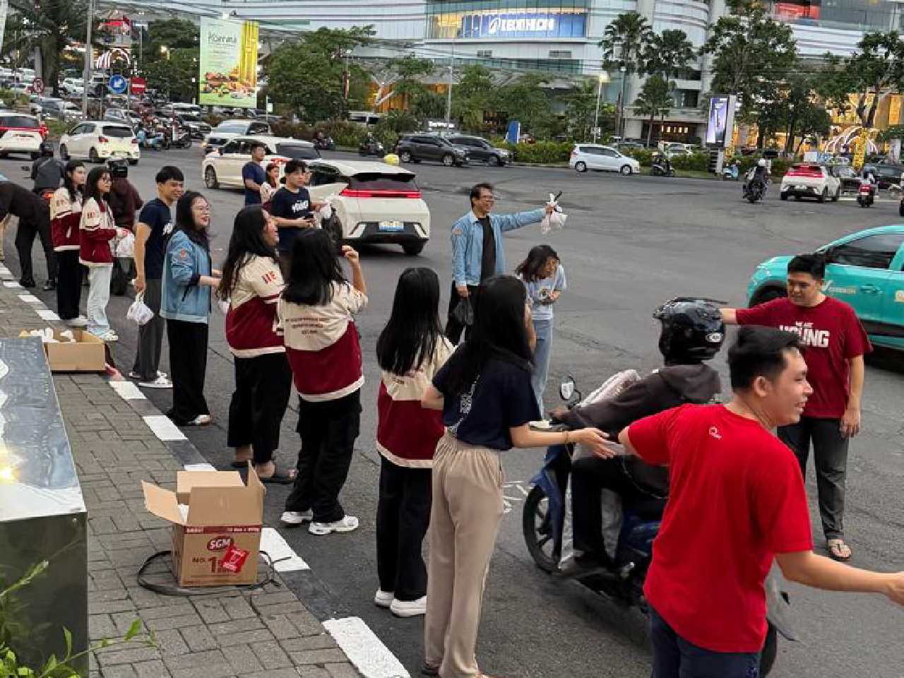 Young Buddhist Association Indonesia (YBAI) bersama kalyanamitta dari Unit Kegiatan Kerohanian Buddhis Universitas Ciputra (UC), Universitas Airlangga (Unair), dan Universitas Surabaya (Ubaya) menggelar kegiatan berbagi 1000 paket takjil kepada para pengendara motor di depan YBA HQ, kawasan Spazio, Surabaya, Sabtu (07/03/2026).