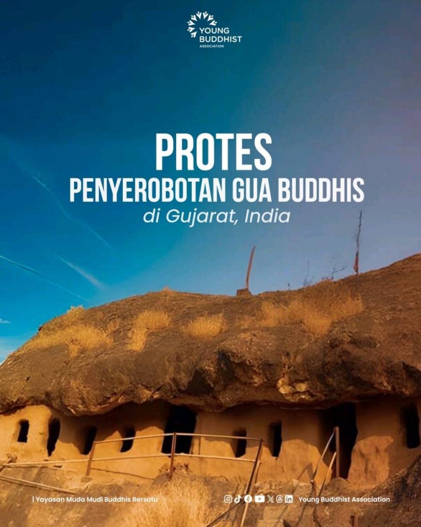 Para Buddhis di Gujarat menggelar protes terhadap penyerobotan kaum Hindu atas situs gua Buddhis di sana.......